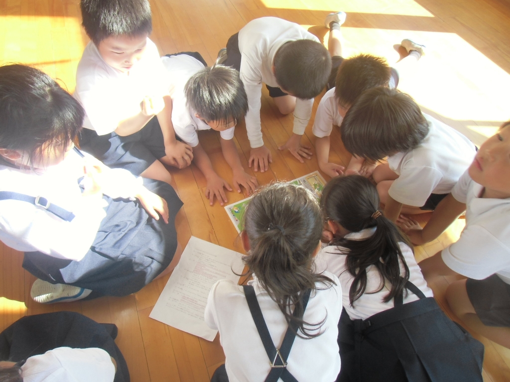 ほうしょう、ファミリーマート、マクドナルド、鶴ケ丘神社、図書館、ふじ、田村動物病院の7か所に分かれての探検です。それぞれで、いろいろなことを質問し、たくさんのメモを書いて戻って来た子どもたちは、目をきらきらさせながら見つけたことを話していました。これから、調べてきたことを友達に発表していきます。ボランテイアで来てくださった保護者の方々、ありがとうございました。探検させて下さった町の方々、ありがとうございました。