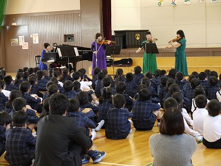 目の前で聴く楽器の美しい響きに児童の目が輝いていました。