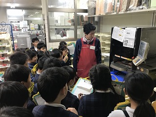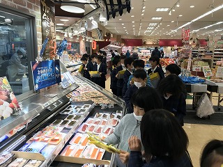普段は入れないバックヤードにも入れてもらい、製造工程や仕入れ作業を見させていただきました。今回のスーパー見学を通して、子どもたちは多くのことを学ぶことができました。