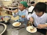 クラスのみんなと協力してつくったホットケーキの味は格別だったようです。