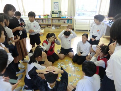 いろいろなことわざのカルタをとり合い、日本の伝統文化を楽しみました。
