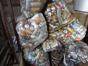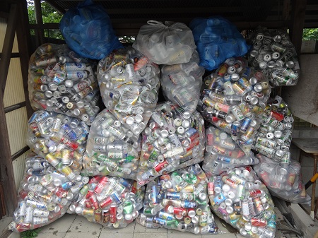 現在実施中のアルミ缶リサイクル運動において、8月から9月の2か月で写真のようにたくさんのアルミ缶をお持ちいただきました。ご協力ありがとうございました。