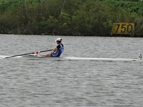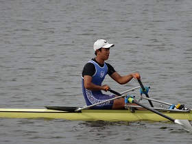 〇男子シングルスカル優勝(2年若崎君 写真左)