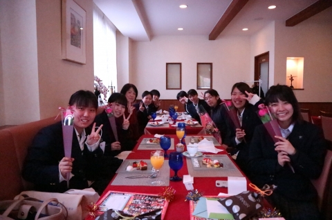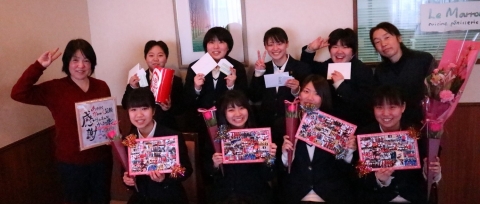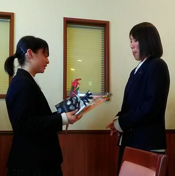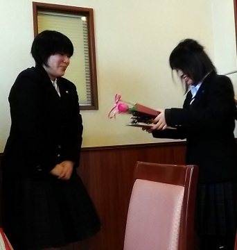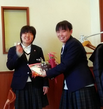 3年生からは、1,2年生へのメッセージと先生方へのプレゼントが送られました。涙あり笑いありの2時間があっという間に過ぎ、最後は記念撮影をして会を終了しました。