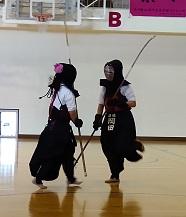 津幡高校なぎなた部は助っ人1年生1人を含む、1年生4人、2年生4人の計8人で競技に挑みました。
