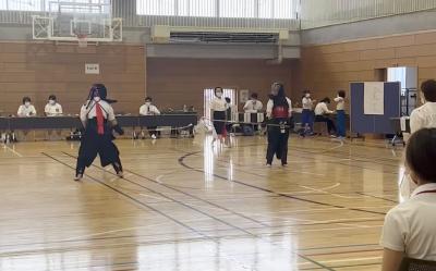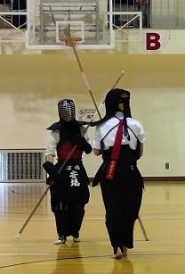 引き分けた副将戦ではスネを警戒する剣道部に対してなぎなた部が初めて面で一本を取りました。