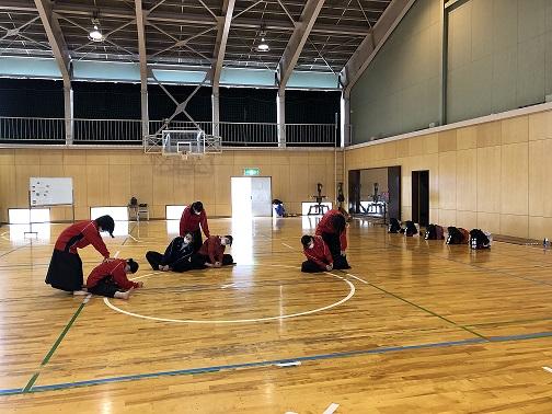 なぎなた部員は剣道部顧問の高西先生にしっかりと稽古をつけてもらっていました