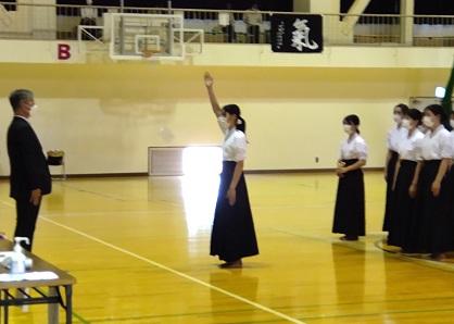 剣道部の大将は上段の構えから見事に面を決めて二本勝ち。強い!