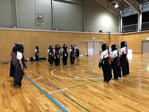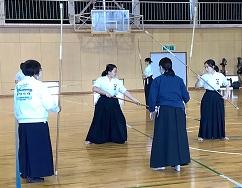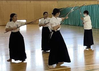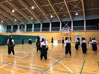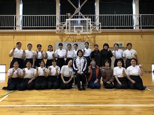 この日は卒業生の先輩や県なぎなた連盟の会員さん、男子の成年選手が練習に参加してくださり、より一層活発な稽古ができました。