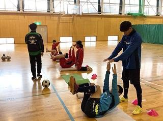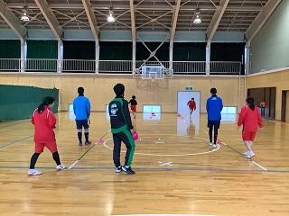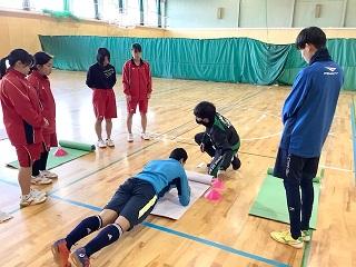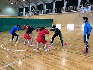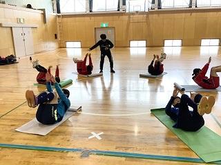 普段のトレーニングメニューとは違った内容で、また、小坂先生が明るく盛り上げてくださったおかげで、とても楽しみながら体力アップに励むことができました。他の部活動と交流しながらお互いによい刺激を与えられるのも津幡高校スポ科ならでは!ときおりサッカーボールでバスケットをする(?)というおかしな一幕もありましたが、みんな終始笑顔で汗を流しました。