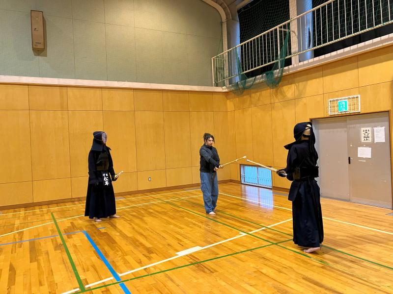 今日は、一緒に素振りや切り返し、面・小手・胴の技を練習しました。
