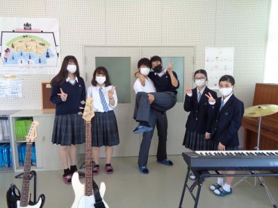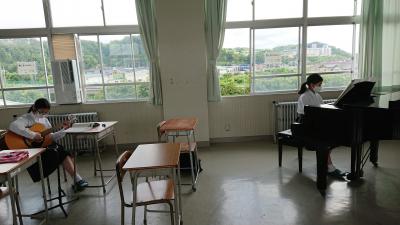 今年は猛暑のため、吹奏楽部兼軽音部は図書室をお借りして練習していました