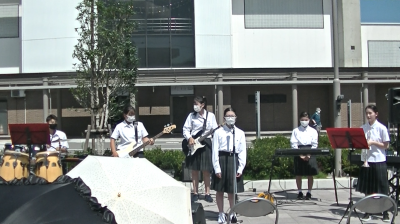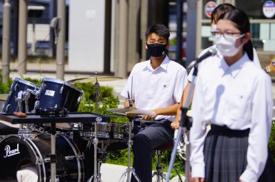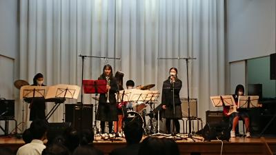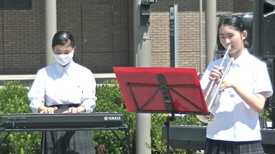 向陽高校と合同で、通常のバンド編成にトランペットを加えたアレンジで演奏しました