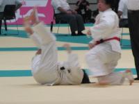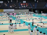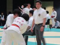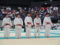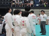 先鋒の桑原が抑込で敗れ、続く次鋒の堀下は合わせ技で一本負け、中堅の林莉が引き分けとなりました。続いて本校副将の遠塚谷と相手次鋒の田中選手、田中選手の送足払で一本をとられ、大将の林弘が引き分けて、3人残しで敗れました。シード校の壁の高さを感じる試合となりました。本大会女子はベスト32で試合を終えました。