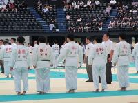 男子の試合は午後、2回戦からで相手は工学院大学付属(東京)です。今回は1.2年生チームで臨みます。先鋒の喜多が1人抜き引き分け、次鋒の樋口が払い腰で一本とられるも、中堅深谷が3人を抜き、3人残しで勝利、明日の3回戦、社高校(兵庫県)と対戦します。
