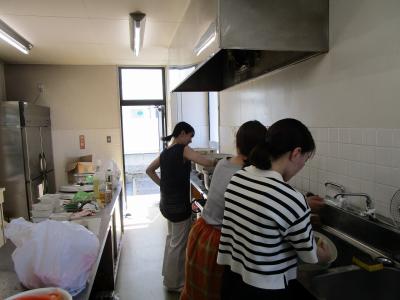 ●2日目30日朝昼食は、OGの北野、小谷、塵濱、出口、OBの清水さんらが朝から豚丼を作ってくれています。