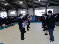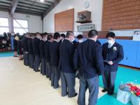 3月3日(木)卒業式後、格技館で「卒業生を送る会」をしました。コロナ禍ということもあり、記念品贈呈だけの会となりましたが1,2年生、顧問は卒業生と最後の言葉を交わしました。