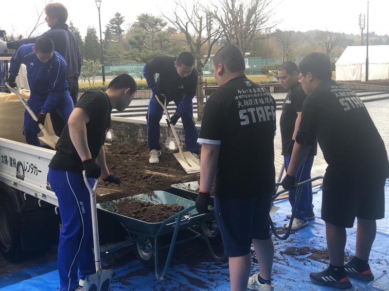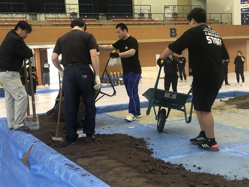 柔道部2,3年生が巡業のための土俵づくりのボランティアに参加しました。