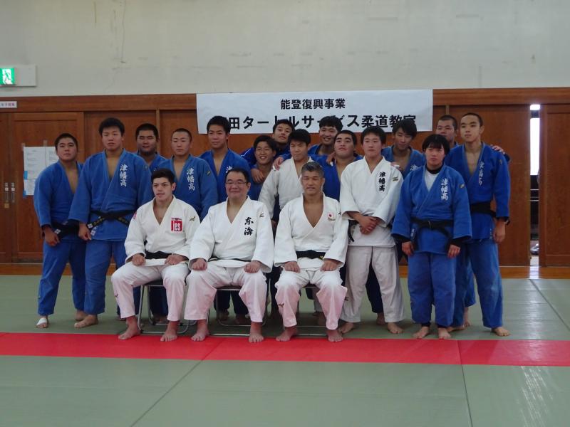 10月27日(日)に羽咋武道館で羽田タートルサービスと東海大学柔道部松柔会が主催する「能登復興支援事業 羽田タートルサービス柔道教室」が開催され、本校柔道部が補助員も兼ねて参加しました。