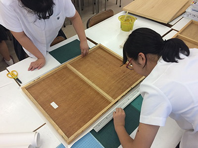 投稿した写真は絵具で画面がゆがまないようにする水張りという行程です。