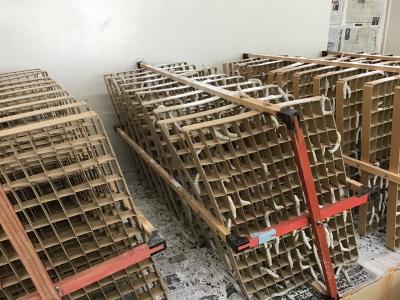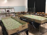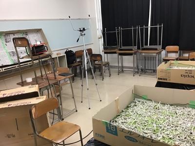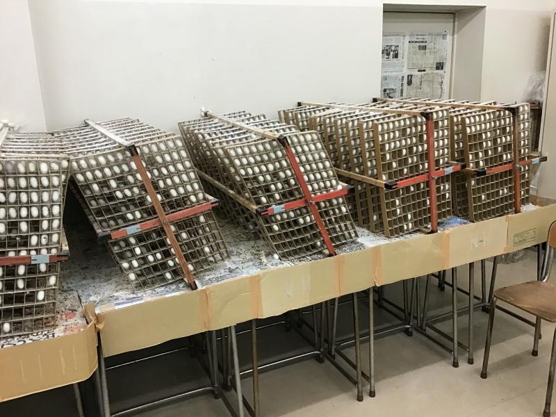 6000匹の蚕の成長に合わせ、寝床も大きくなっていきます。ダンボールで一畳半ほどの寝床を6つ作りました。
