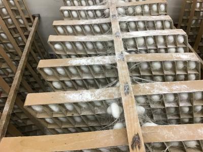 今年度の養蚕によって収穫することができた繭は、春6000個、秋2000個です。現在は長野県の製糸会社 宮坂製糸所にて製糸され、保存していただいています。今後は、この繭を使って、来年度の100周年に向けて、どのような製品に仕上げていくか話し合い、決めていきたいと思っています。