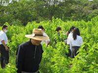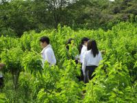 ●蚕の餌「桑の葉」を農場桑畑で収穫します。この後、蚕に成長とともに食べる量が増え、桑の葉も毎日大量に収穫していくことになります。
