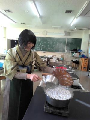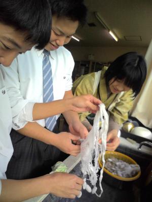 糸を取り終えた繭からは蛹が現れ、蛹を取り出して新しい繭を鍋に加えるなど、座繰り器を回す以外にも多くの作業があり、生徒たちは忙しさを感じながらも熱心に取り組んでいました。
