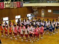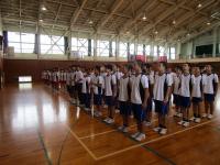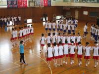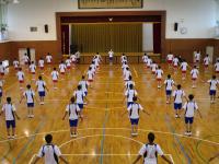 続いて、集団行動から「津高体操」態勢に並びます。自分の場所を基準(中央)から確かめます。