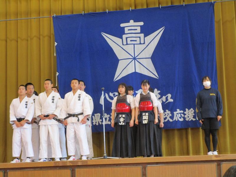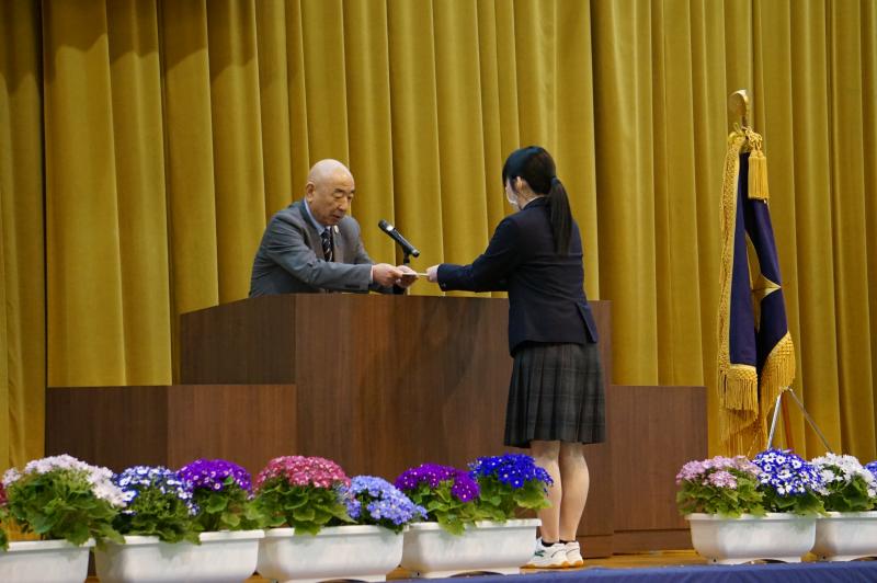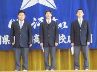 〈産業教育振興中央会会長賞受賞 坂井詩和さん〉 〈体育科優秀生徒賞受賞 道上悠作さん 松山詠名さん〉