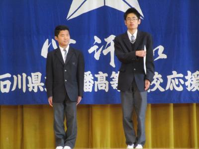 2月27日(火)試験終了後、報告会・壮行式がありました。