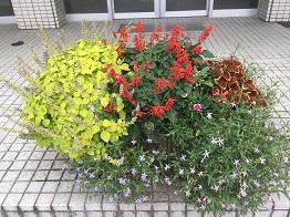 玄関のプランターもまだまだ元気に花を咲かせたいと思います。生徒や来校者の皆さんを迎え、みなさんを楽しませたいと思います。