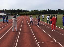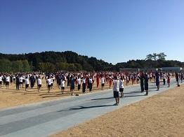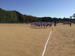 石倉校長挨拶の後、準備体操を丹念に行いました。ストレッチをし、水分を適度に摂り、スタートを待ちます。