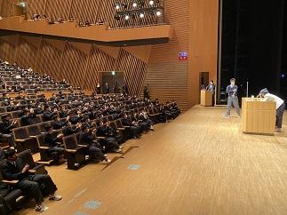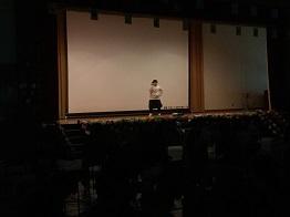 会場を津幡町文化会館シグナスに移し、全校生徒が講演を聴きました。