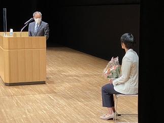 最後に、生徒代表が花束を贈呈し、石倉校長の御礼の言葉で講演会は終了しました。