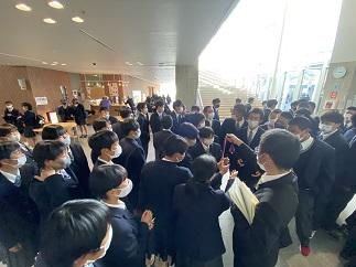 会場は、津幡高校から2㎞。歩いて30分ほど。ほとんどの生徒が歩いて往復しました。これもいい運動になったのではないでしょうか。