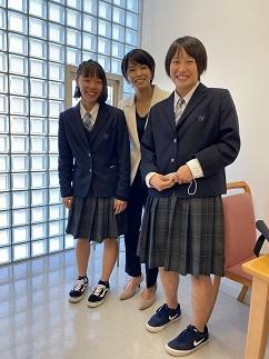 実は、講演会に先立ち、松本さんと花束を贈呈する柔道部新旧女子部長が打ち合わせを行っていました。