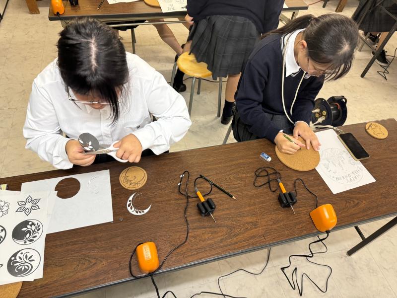 インドア班は、電熱ペンを使ってコルクに絵や模様を焼き付けるコルクバーニング体験をしましたみんな真剣な表情でデザインを考え、集中して作業に取り組んでいたので、とても素敵な作品がたくさん完成しました