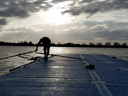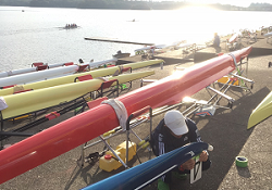 シングルスカルは1人で運びます!さすがの安定感絵文字:晴れ                          蹴り出し!河北潟へLet's GO!!