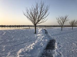 桟橋にはまだ雪が残っています