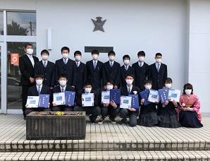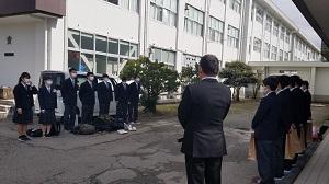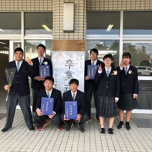 久しぶりの青空の下,津幡高校卒業証書授与式が執り行われ,ボート部3年生7人が