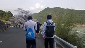 4人一組で測定を行い,ほかのメンバーは周りから応援です