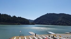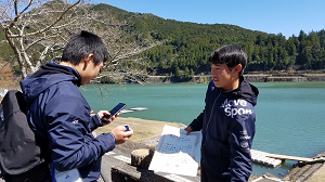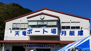 ↑ 天竜ボート場 山に囲まれた自然豊かなボート場です ↑ 試合前のアップの様子