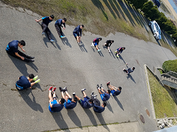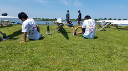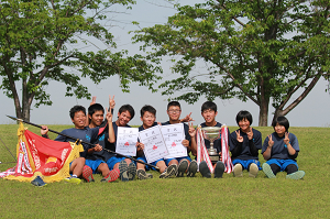 総合優勝の優勝旗と優勝カップもいただきました! ↑レースも終わりリラックスモードの選手たち ↑ 出艇前に先輩も応援に来てくれました!