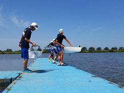 ↑ 男子シングルスカル ↑レース終わり桟橋に戻ってきました!お疲れさま