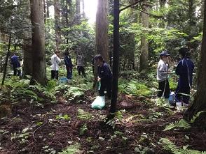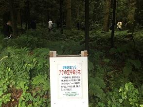 取り木について、事前学習を行いました アテの森林に入っていきます