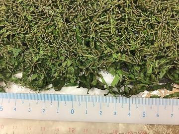 昨日よりも、色もちょっと白くなり昨日に比べて、気持ち一回り程度大きくなりました。昨日は、定規を入れていなかったので、サイズが比較できませんが、本日のお蚕さんの大きさは画像のような感じです。