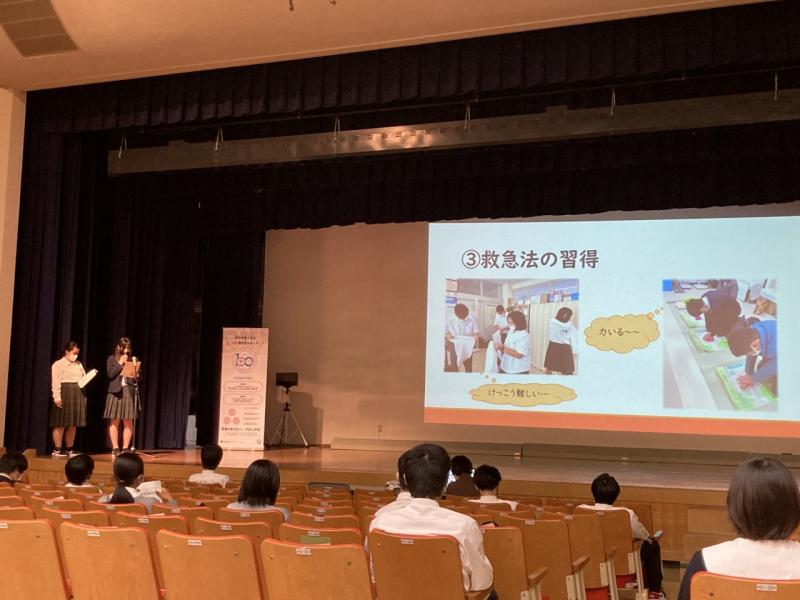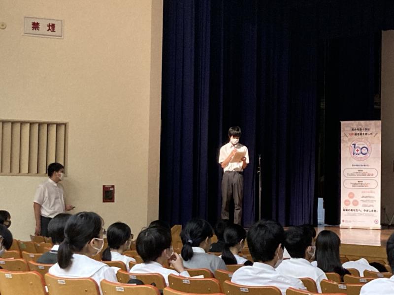 第1部では3年生が代表して津幡高校JRC部の活動を発表しました。