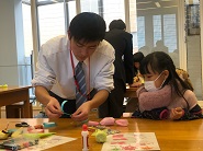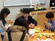 本校オリジナルの県木「アテ」を使った香り袋を来場された子どもたちと共に作成し、喜んでいただきました。