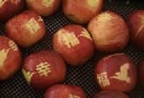 〇津幡高校朱鷺サポート隊は、11月3日(日)に「幸」「福」の文字が浮き出ているリンゴ(トキめきリンゴ)の2個セットを来園された方に無料でプレゼントさせていただきました。